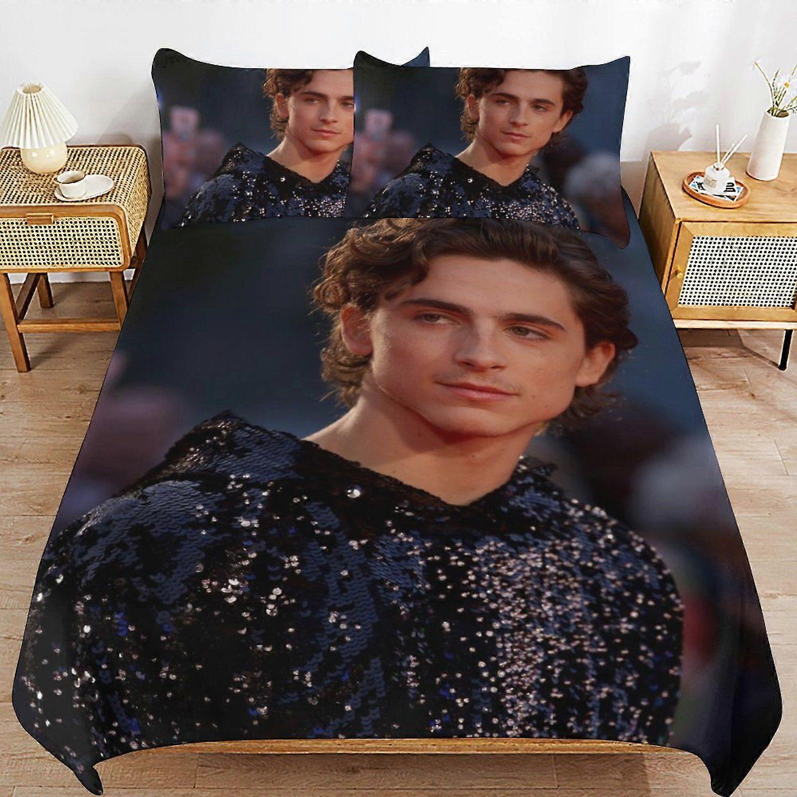 a46 Timothe Chalamet Durable Stitch Pattern Rest Comfort Feel Breathable Zip Fabric Duvet Cover Sets Nightly b46