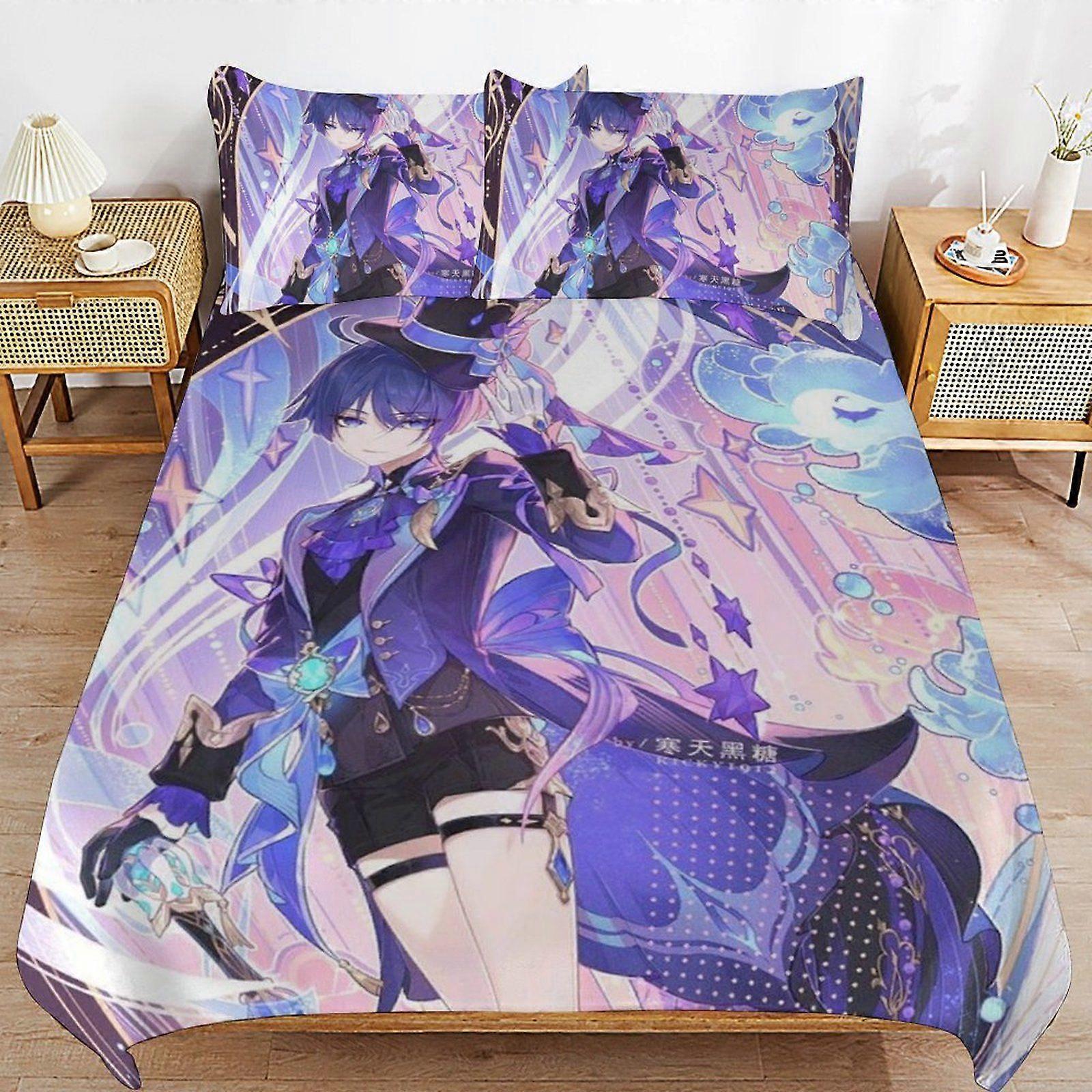 A460 GENSHIN IMPACT Convenient Use Cozy Feel Secure Zip Smooth Threading Duvet Cover Sets Ideal for Home N460