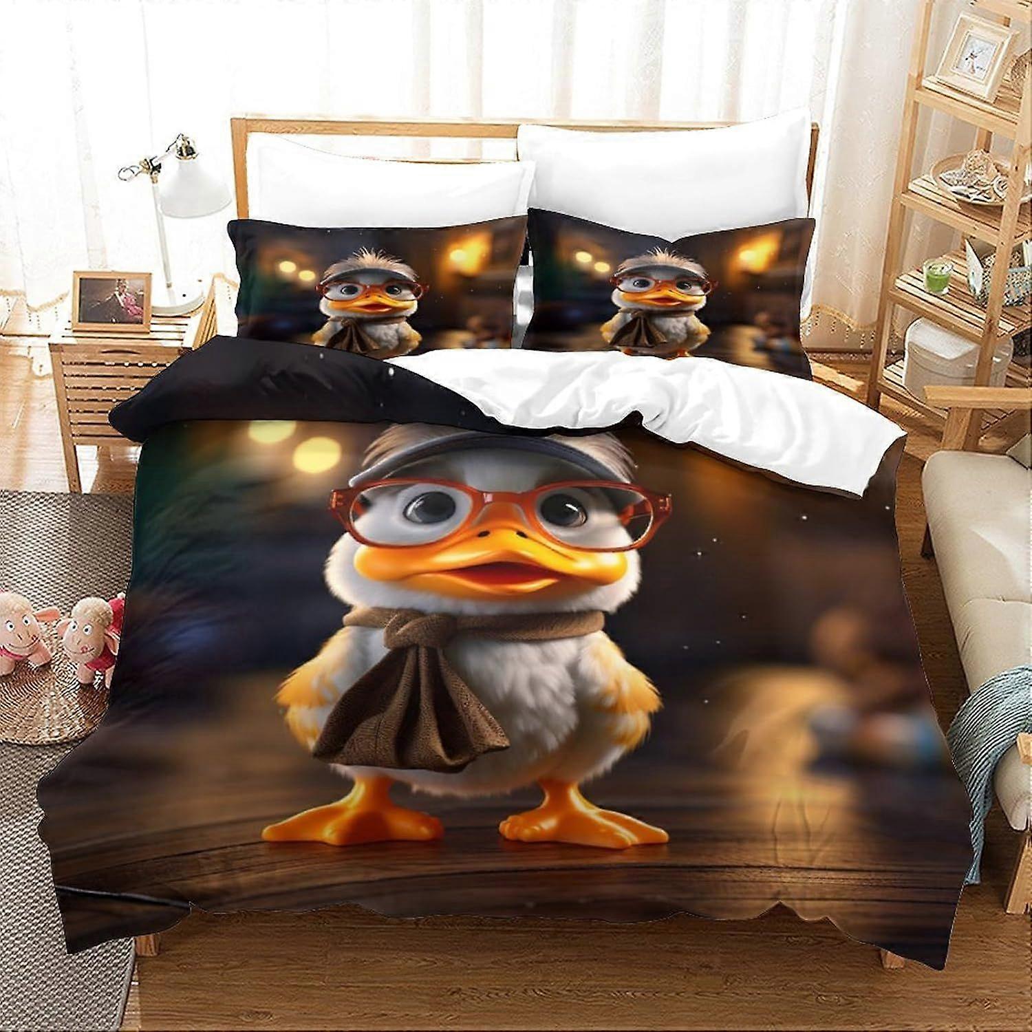 a553 3D Printed Little Yellow Duck Bed Kit with Cute Design, Soft Microfibre, 3 Piece Duvet Cover Set, 2 Pillowcase, Hidden Zip, . j553