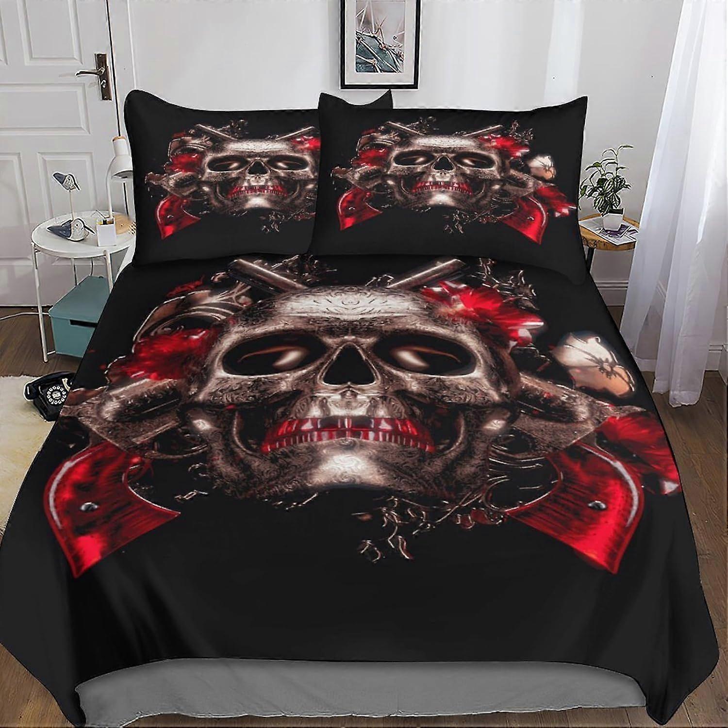 A562 Skull Skeleton Bedding Set,3D Duvet Cover with Pillowcases,for Soft Microfiber Halloween Quilt Cover with Zipper Closure 3 Pieces Set Double B562