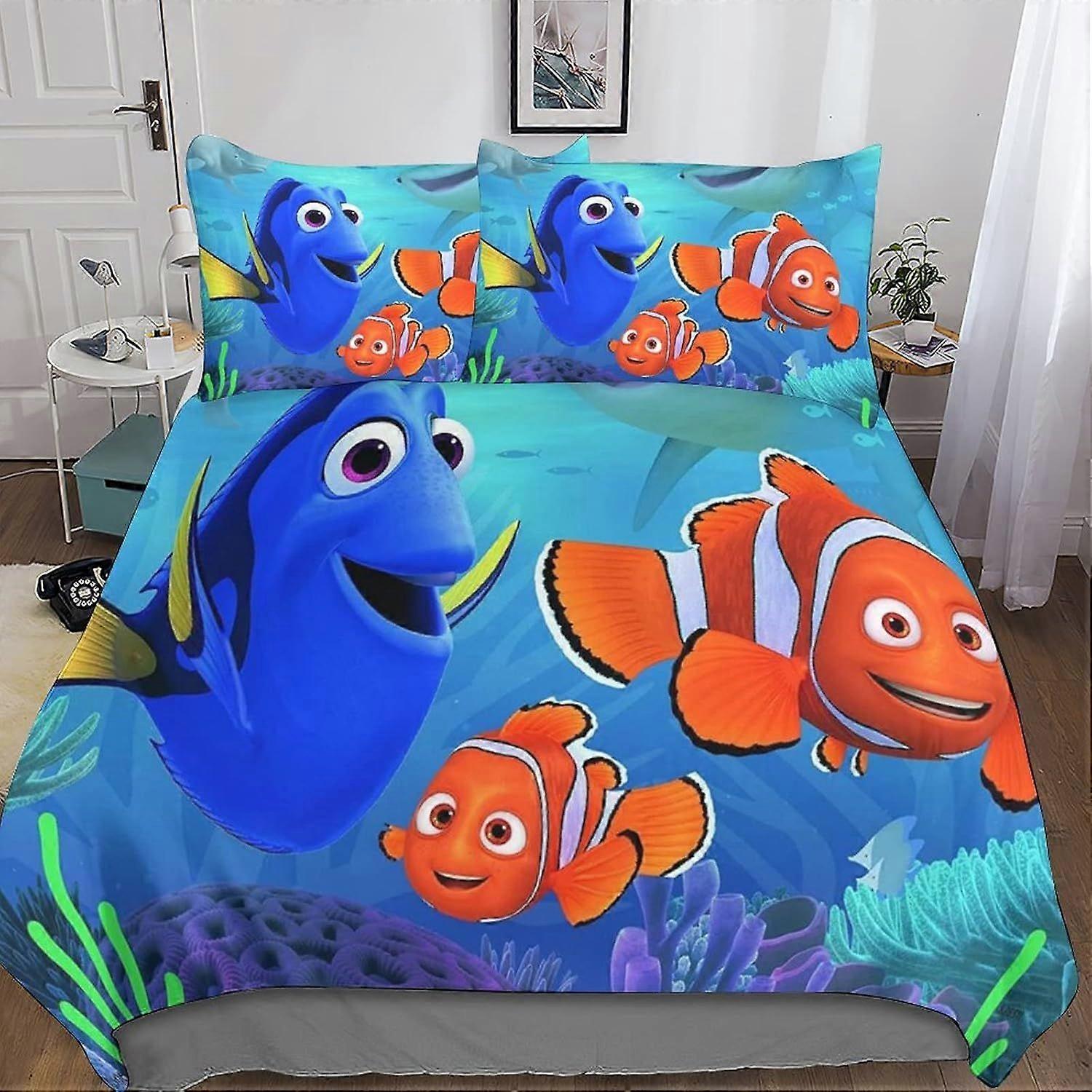 A576 Finding Nemo Duvet Cover Bedding Finding Dory Comforter Cover Set Girls 3 Pieces for Kids Teens 3D Bedspread Quilt Cover with Zipper Closure Soft