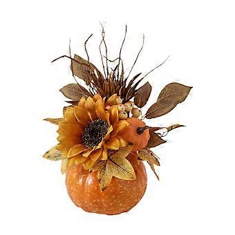 Artificial Pumpkin with Flowers Ornament for Thanksgiving Bedroom DIY Crafts Orange