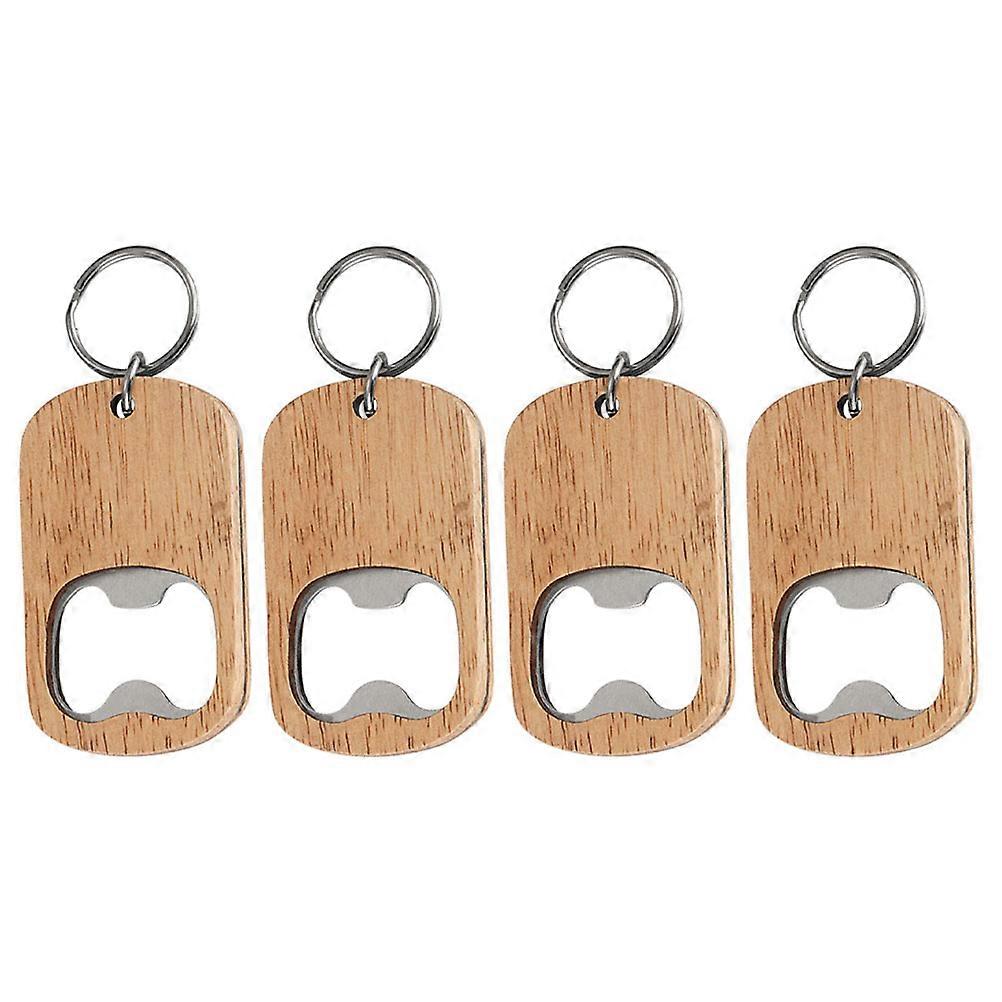 Wood Bottle Opener Rectangular Men Daily Use Stainless Steel Key Holding 3.7×1.6×0.2in 4Pcs