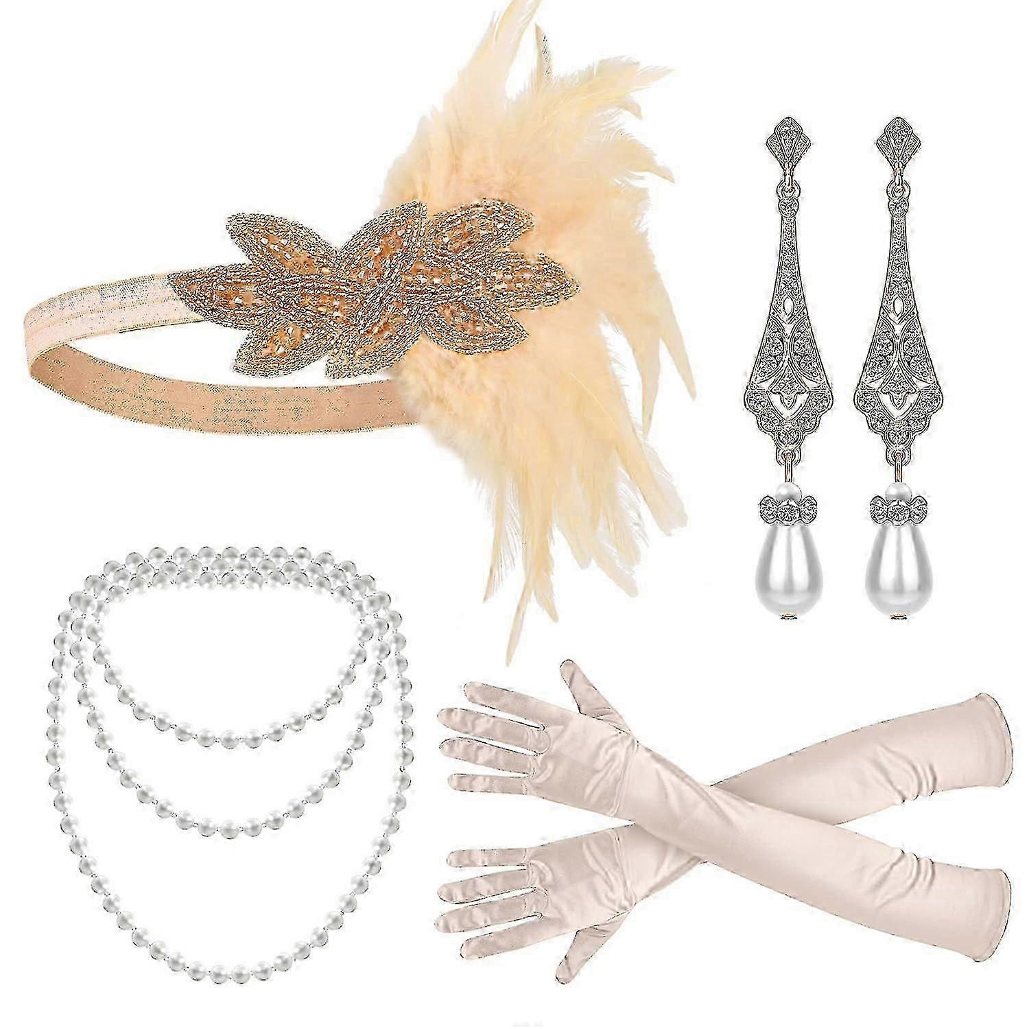Flapper Accessories, 1920s Gatsby Accessories for Women Includes Flapper Headbands Necklace Gloves Black