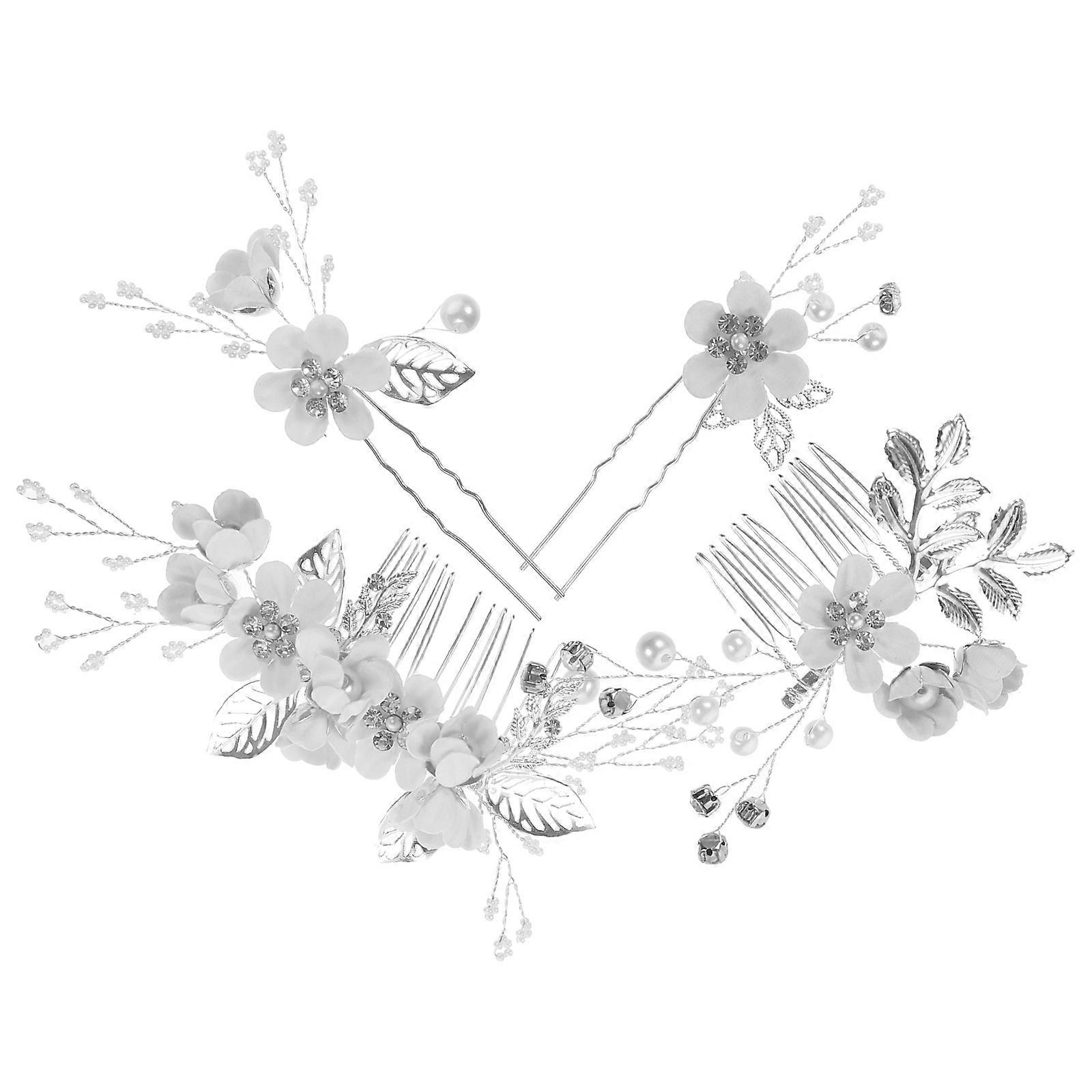Bridal Hair Accessories Flower Hair Comb 5 Sets Simple Silver Design Suitable For Weddings Engagements Evening Events