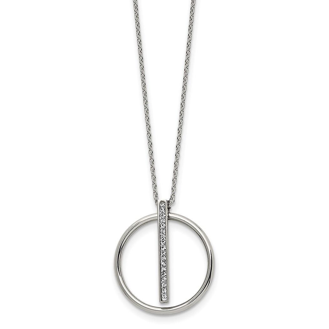 21mm Stainless Steel Polished With Preciosa Crystal Pendant a Cable Chain With A 2 Inch Extension Necklace 16 Inch Chain