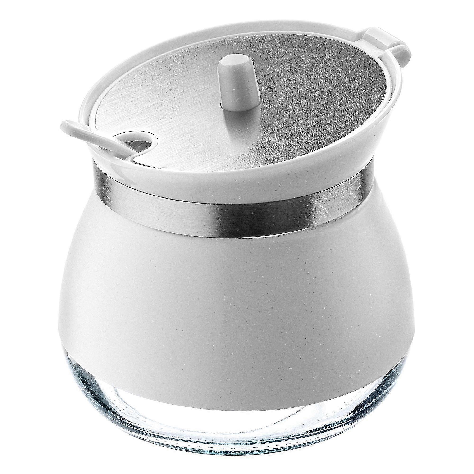 ELEGANCKA - cukierniczka z łyżeczką o pojemności 270 ml to produkt o niezwykle eleganckim wyglądzie. Wyróżnia ją oryginalny kształt i gładka powierzchnia bez dodatkowych zdobień. Dzięki temu doskonale prezentuje się na każdym stole.PORĘCZNA - cukierniczka ma opływowy kształt i niewiele waży, co zdecydowanie ułatwia trzymanie jej w dłoni. Dzięki temu możesz wygodnie przenieść ją na stół, bez obaw o przypadkowe stłuczenie. Z pewnością nie wyślizgnie się z ręki.ŁYŻECZKA W ZESTAWIE – pojemnik na cukier zamykany jest pokrywką z wygodnym uchwytem i otworem na łyżeczkę. Jest on idealnie dopasowany do łyżeczki dołączonej w zestawie, dzięki czemu jej nie zgubisz.ŁATWA W CZYSZCZENIU – cukiernica jest wykonana z higienicznego szkła, które pokryto stalą malowaną proszkowo. Natomiast pokrywkę wykonano z tworzywa sztucznego i stali nierdzewnej. Wszystkie elementy łatwo umyć w razie potrzeby.RÓŻNE KOLORY – cukiernica szklana o wymiarach 9 x 9 cm dostępna jest w dwóch kolorach: białym i czarnym. Możesz wybrać tę, która lepiej wpisuje się w Twój wystrój wnętrza lub podarować ją komuś bliskiemu w prezencie. Cukierniczka to element wyposażenia, który gości niemal na każdym stole. Niezależnie od tego czy uczestniczysz w spotkaniu z przyjaciółmi czy w rodzinnym obiedzie, chyba nie wyobrażasz sobie braku pojemnika z cukrem pod ręką? Ten obowiązkowy element powinien idealnie wpisywać się w aranżację Twojego wnętrza i być jej doskonałym uzupełnieniem. Dlatego najlepszym wyborem jest cukiernica z łyżeczką - dokładnie taka, jaką znajdziesz w naszej ofercie! Jej opływowy kształt i uniwersalny kolor pozwala na zastosowanie jej zarówno w towarzystwie nowoczesnych zastaw stołowych, jak i tych bardziej klasycznych. Uniwersalność naszej cukierniczki nie jest jej jedyną zaletą! Niekwestionowanym atutem jest także łatwość czyszczenia. Elegancki design bez zbędnych zdobień jest sprzymierzeńcem bezproblemowego utrzymania w czystości tego małego, lecz jakże przydatnego dodatku. Wystarczy, że raz na jakiś czas przetrzesz go mokrą szmatką, a ona na długi czas zachowa swój świetny wygląd. Co więcej, cukiernica wyróżnia się opływowym kształtem, który ułatwia jej wygodne trzymanie i uniemożliwia przypadkowe wyślizgnięcie z ręki. Pojemnik na cukier wykonano z solidnego szkła i stali malowanej proszkowo, dlatego z pewnością wytrzyma wiele lat użytkowania. Co więcej, posiada pokrywkę z miejscem na łyżeczkę, która uchroni zawartość przed niechcianymi insektami i kurzem. Warto dodać, że cukierniczka jest oferowana w zestawie z łyżeczką, która idealnie uzupełnia jej kolorystykę. Tworzą zgrany duet, który poratuje cukrem zawsze, gdy zajdzie taka potrzeba. W naszej ofercie znajdziesz dwa kolory cukiernicy: biały i czarny. Zdecyduj, która cukierniczka z łyżeczką lepiej uzupełni Twoją zastawę!