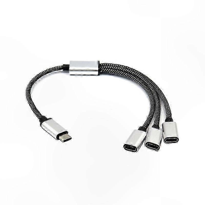 Features: This USB C to 3 USB C Female Cable provides three USB C ports, allowing you to connect multiple USB C peripherals to your USB C enabled devices. Compatible with phones, tablets, laptops, and other devices with Type C interfaces. Connect USB C card readers, USB drives, data cables, keyboards, mice, and more. The USB C female ports support charging output only and do not support charging input. Supports data transmission up to 480Mbps; does not support audio or video transmission. The USB C splitter features a braided exterior and aluminum alloy casing for enhanced durability and long-term use. Specifications: Material: Nylon + Aluminum Alloy Length: Approx. 30cm / 11.81in Data Transmission Speed: 480Mbps Note: Please allow 1-2cm measurement deviation due to manual measurement. Color may vary slightly due to monitor display differences. Package Includes: 1 x USB C Cable