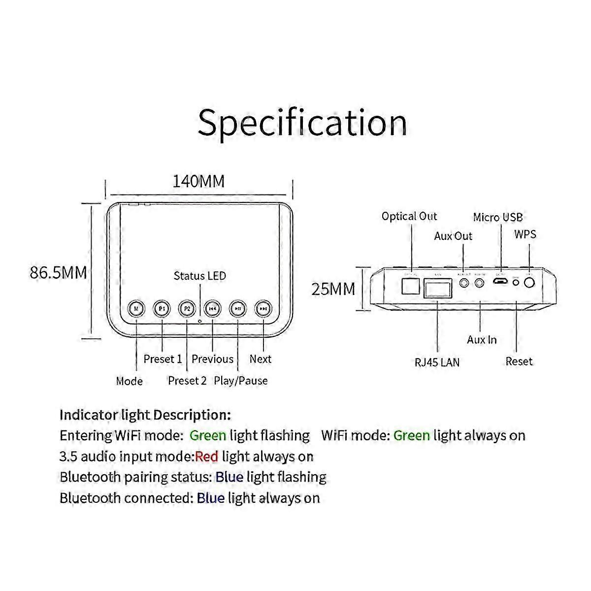Wireless Music Adapter Airplay DLNA Multi-Room WIFI Wireless Audio Receiver for Traditional HiFi Sp