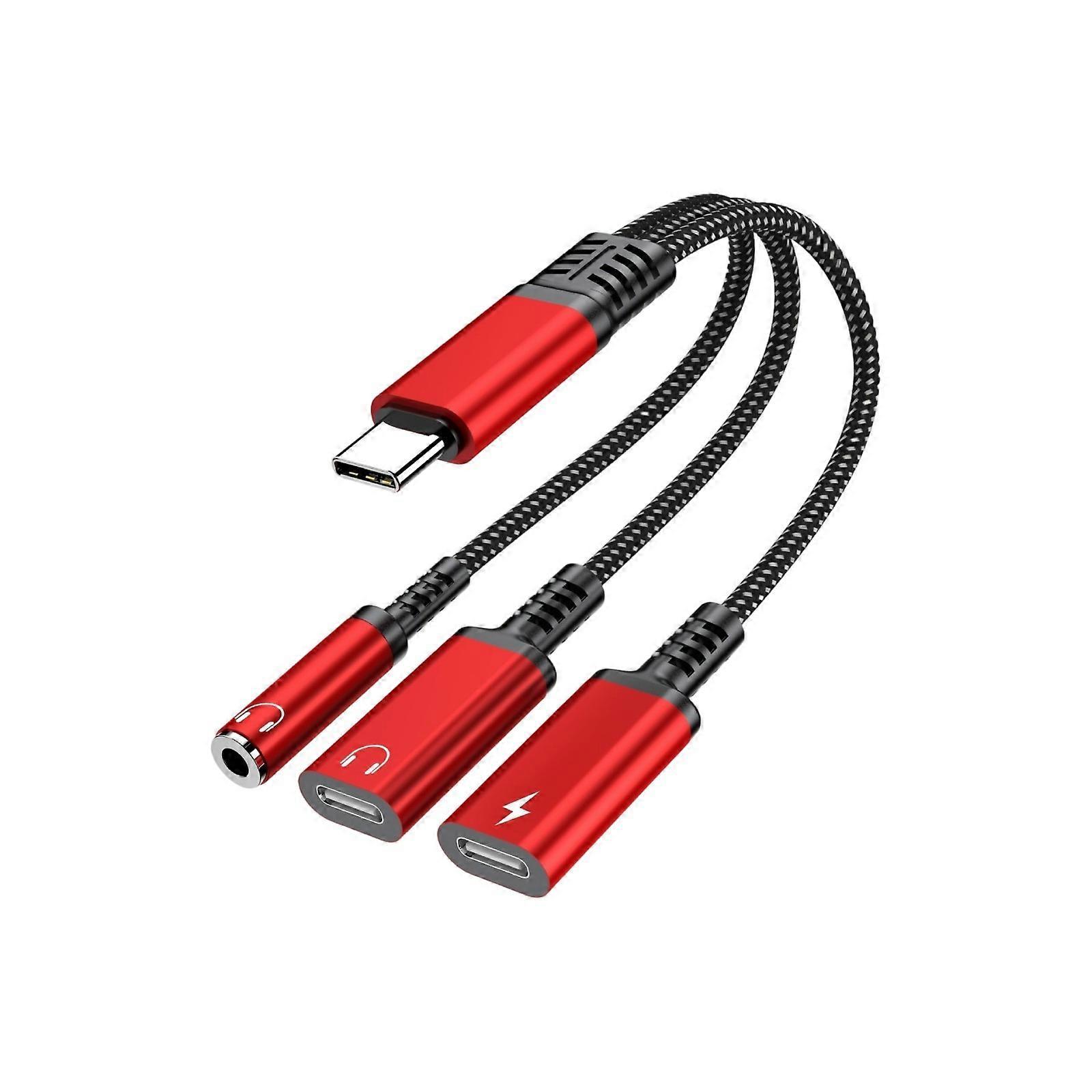 Multifunction 3 In 1 USB C To Auxiliary Adapter With Fast Charging Simultaneous Stereo Streaming For Smartphone Laptops Red