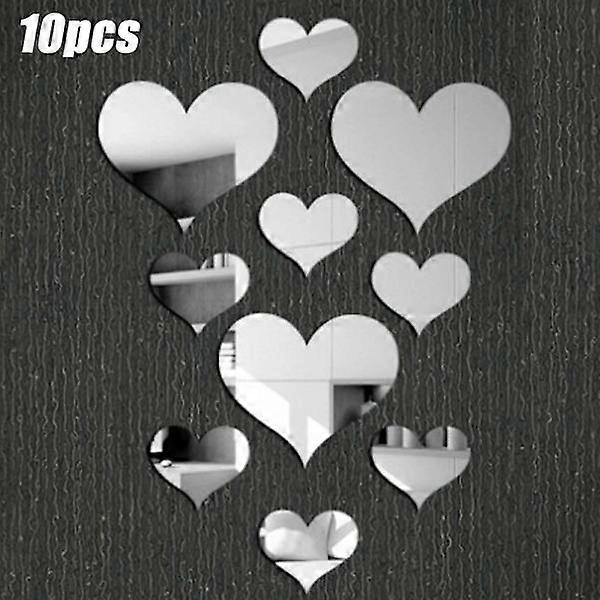 Heart-shaped Mirror Wall Sticker - Self-Adhesive Acrylic Decal Silver