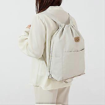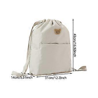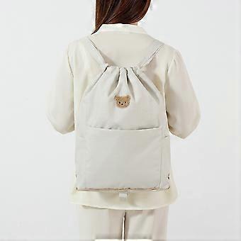 Lovely Bear Embroidery Drawstring Bag Portable Travel Backpack Wear Resistant Storage Handbag for Baby Diapers Wipes Black