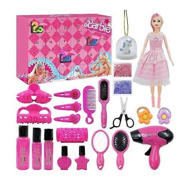 Barbie-inspired Advent Calendar - Make Christmas sparkle with Barbie every day Our Barbie-inspired Advent Calendar is the ultimate gift for any little Barbie fan who dreams of a glamorous and fashion-filled Christmas. With 24 compartments filled with Barbie-themed surprises, this calendar offers a daily dose of Barbie magic. Why choose our Barbie-inspired Advent Calendar: - 24 door openings: Every day until Christmas Eve, you get to open a new door and discover a new Barbie surprise. This provides a daily dose of Barbie excitement and anticipation throughout December. - Barbie variety: Inside the Advent Calendar you will find everything from Barbie dolls and accessories to clothes, jewelry and little Barbie-inspired treasures. Perfect for creating imaginative Barbie adventures. - High-quality products: All Barbie-themed products are carefully selected for their quality and detailed design that reflects Barbie's glamour. - Perfect Christmas decoration: This Advent Calendar can be used as a decorative Christmas decoration that transforms your home into Barbie's world and spreads joy.