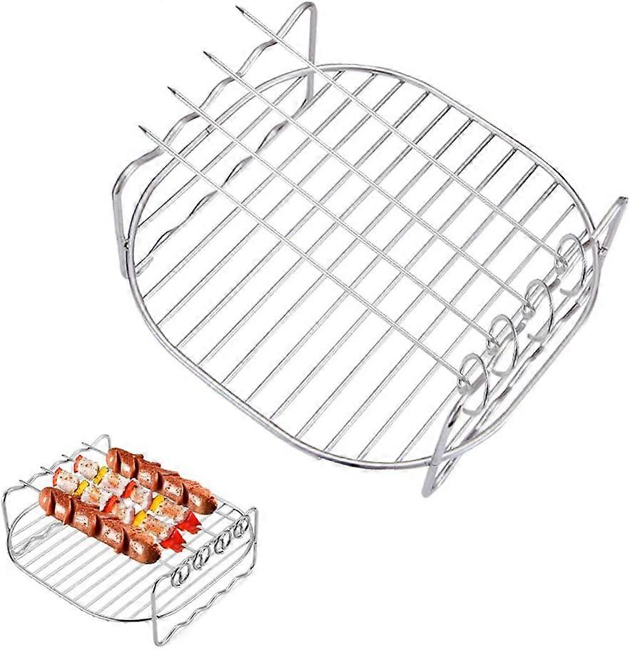 Air Fryer Double Layer Rack with 4 Skewers, 6.8 Inch Stainless Steel Airfryer Grill Pan