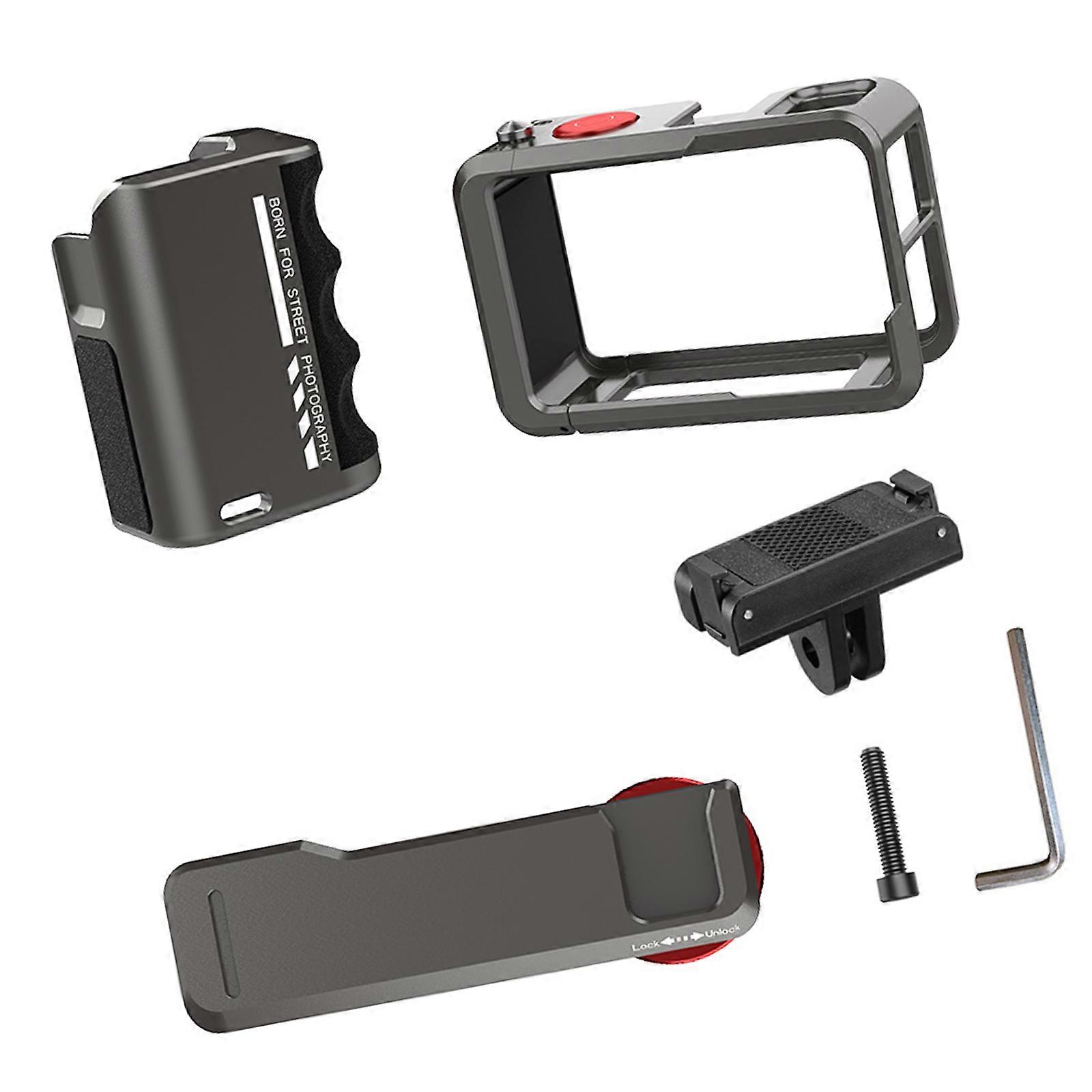 Features: Designed exclusively for Action 5Pro/4/3 cameras, this magnetic handle cage features a precise engineered quick release mechanism for instantly camera swaps while maintaining rock solid stability during intense shoot . Crafted from lightweight yet durability aluminum alloy, the ergonomic grip integrates multiple cold shoe mounts and 1/4inch screw holes for seamless attachment of microphones, LED lights, or tripods to enhances creative filming setups. Ideal for vloggers, outdoor adventurers, and content creators needing swifting equipment transfer between handheld shots, and accessory enhanced productions. Perfect for dynamic scenarios like skateboarding documentation, travel vlog on trail, or professional event coverage where rapid camera reconfiguration is essential. Sock resistance design with a sleek finish, delivering professional functionality that withstands drops while complementing high end camera aesthetics. Specifications: Component: Aluminum alloy, ABS Size:Approx.6.6x2.8x4.7cm/2.59x1.1x1.85inch for Action 5Pro/4/3 Camera Interfaces: With cold shoe interfaces and 1/4 screw hole Applicable scenario:Street Photography,Travel records, Package Includes: 1pc Camera Cage 1pc Handle 1pc Magnetic Base 1pc Screw 1pc Tool note: Please allow 1-3cm errors due to manual measurement. Due to the differences between different monitors, the picture may not reflect the actual item color.