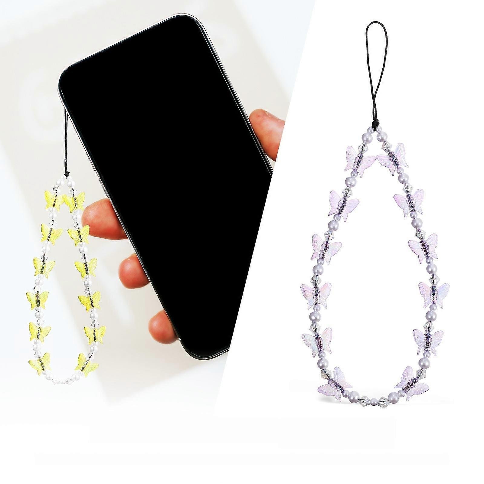 Butterfly Beaded Phone Strap Mobile Phone Lanyard Wrist Strap 4Pcs