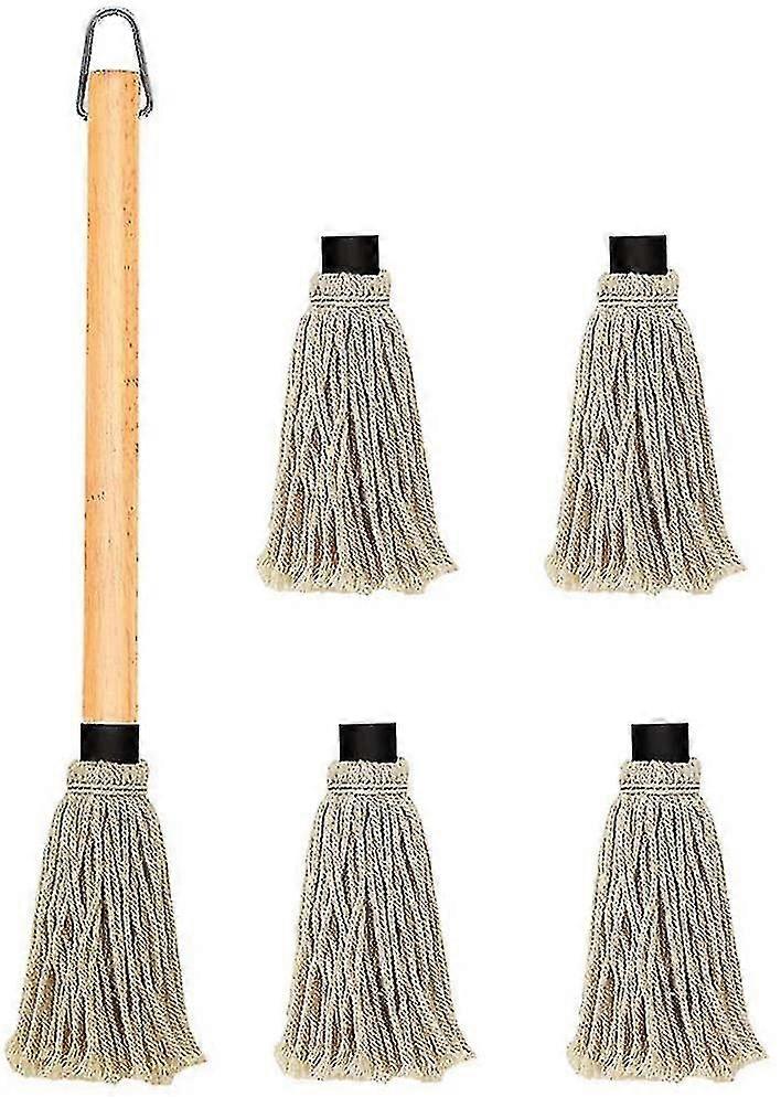 18 Inch Mop Wooden Long Handle With 4 Extra Replacement Heads For Grilling & Smoking