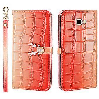 Alce Pattern Phone Case para Samsung Galaxy J4 Plus com suporte de cartão, cordão, material de couro Pu, função de carteira, proteção contra queda de canto