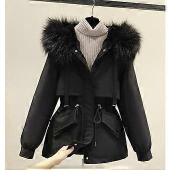 Cotton Padded Plus Size 3XL Winter Big Fur Jacket Women Loose Slim Warm Hooded Parka Coat Down jacket