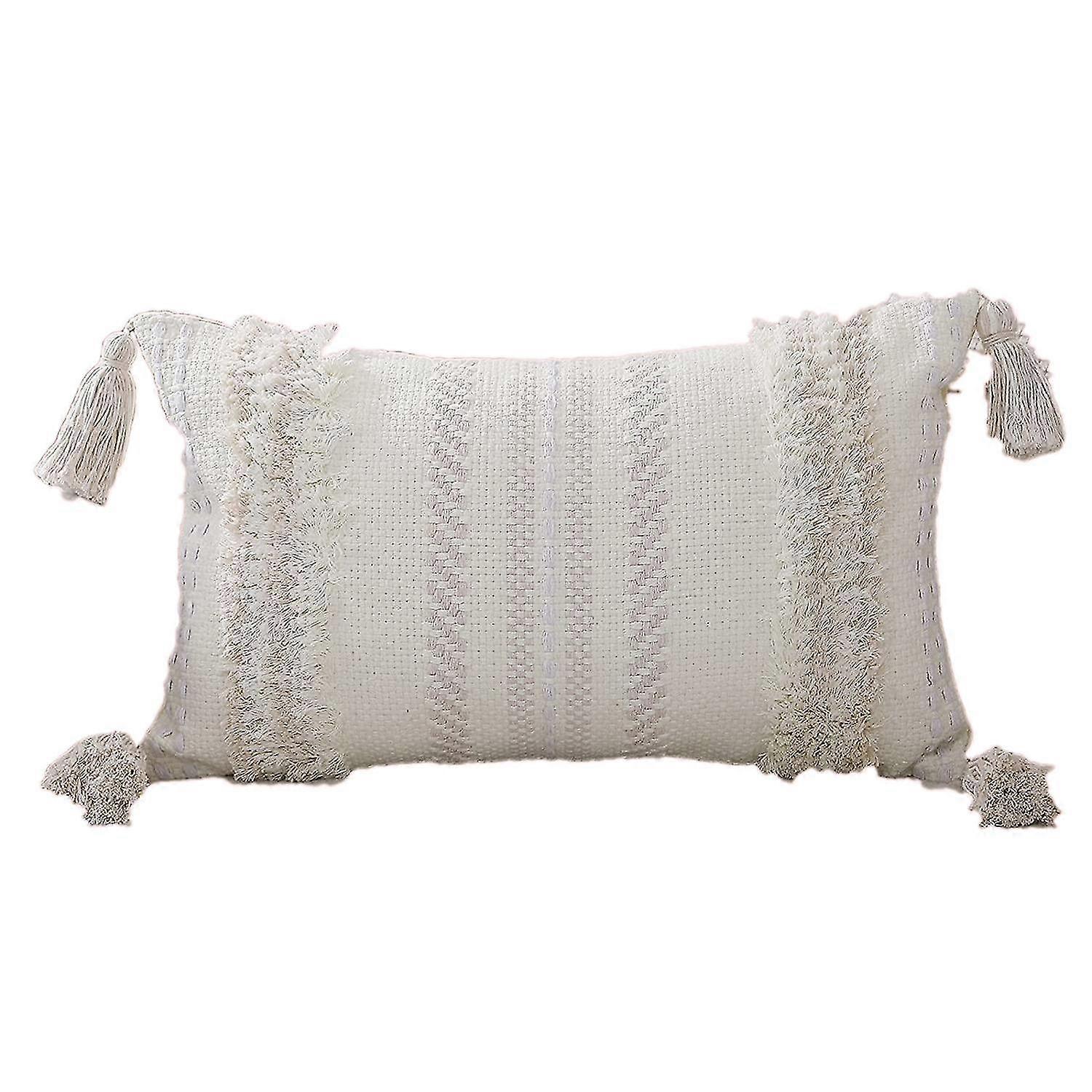 Cotton Boho Lumbar Decorative Throw Pillow Covers, Hand-woven Tufted And Tasseled Throw Pillow Covers, Compatible With Sofa Bed, Bedroom And Living Ro