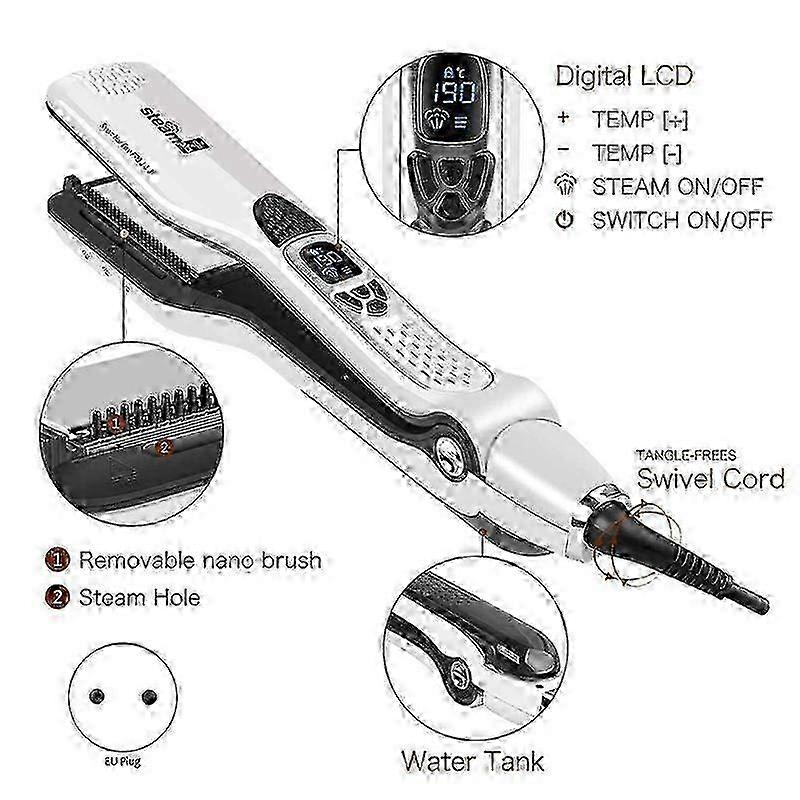 Hair Straightener, Steam Flat Iron with Removable Comb EU Plug White