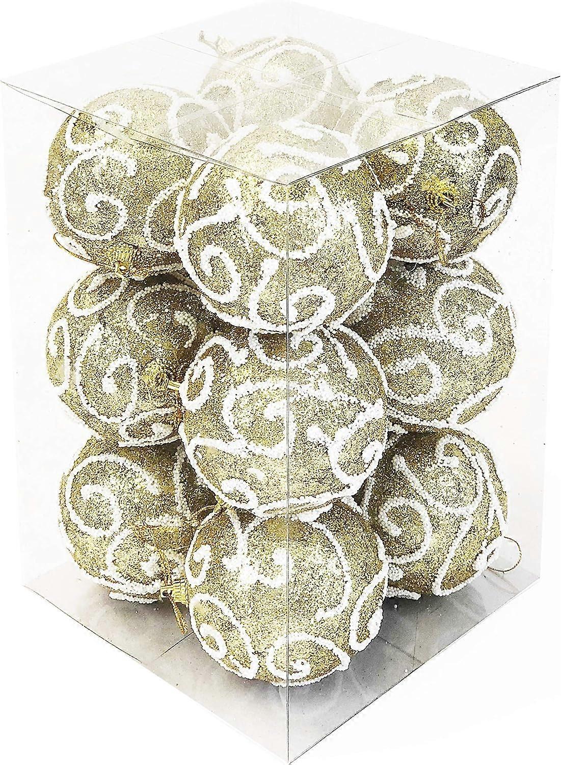 allgala 12 Pack 3 Inch Christmas Tree Ornament Balls-Glitter Decorated Foam Large Xmas Ball-Gold