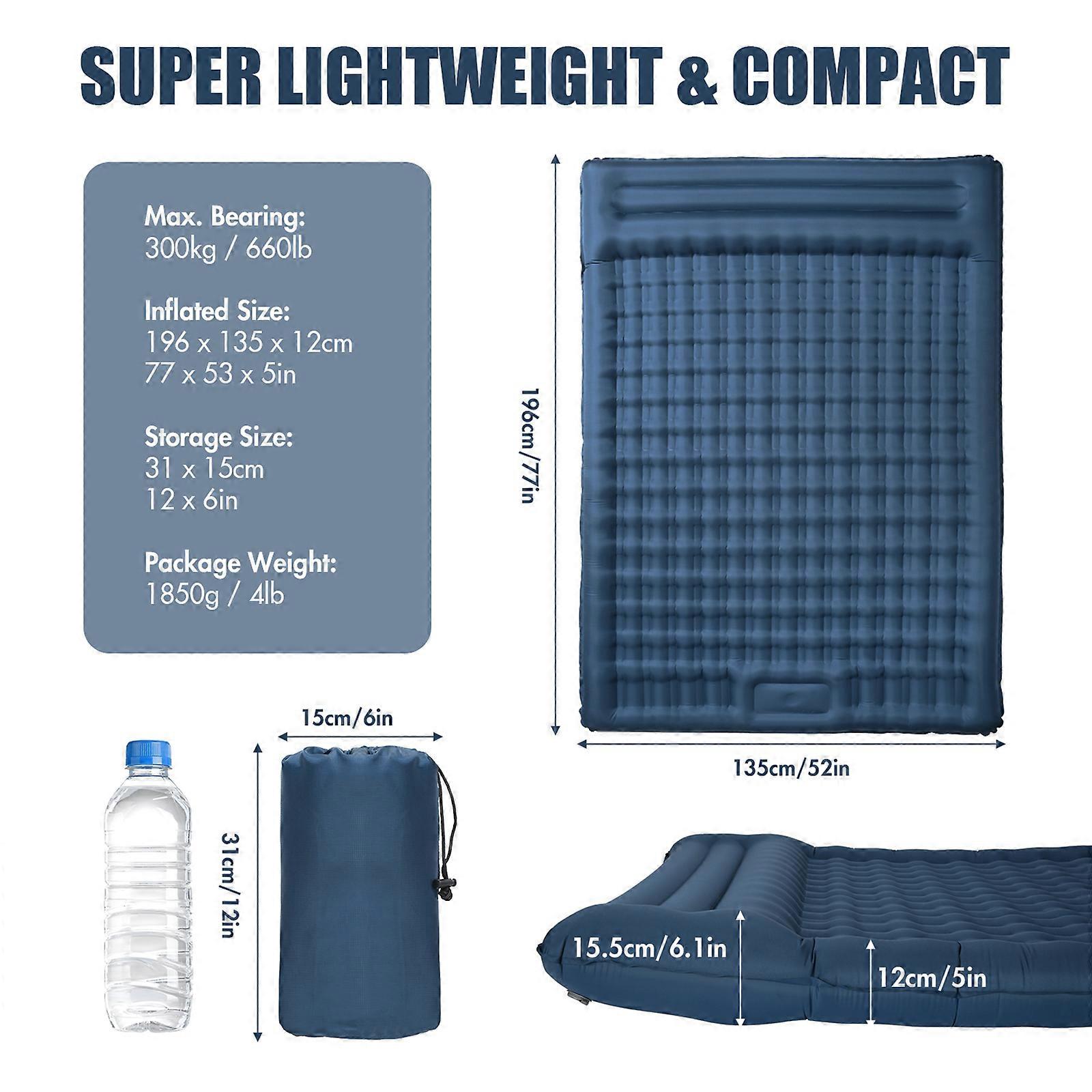 Inflatable Double Sleeping Pad Extra Thick 5 Inch Sleeping Pad Mat Air Mattress with Built-in Pump for Camping Backpacking Hiking Traveling Tent