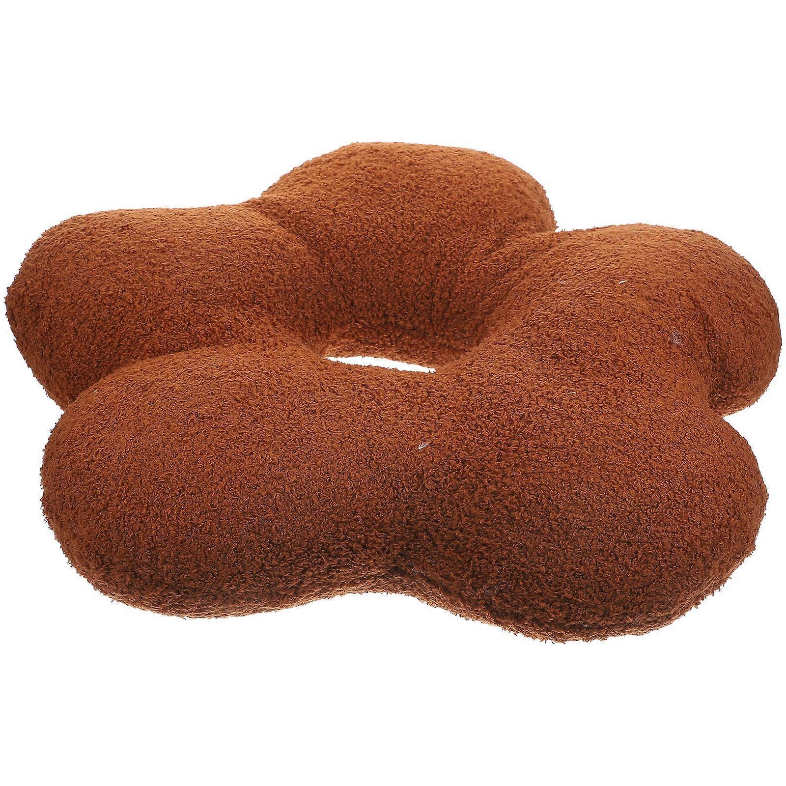Flower Plush Throw Pillow Chair Back Cushion for Decoration Coffee Color