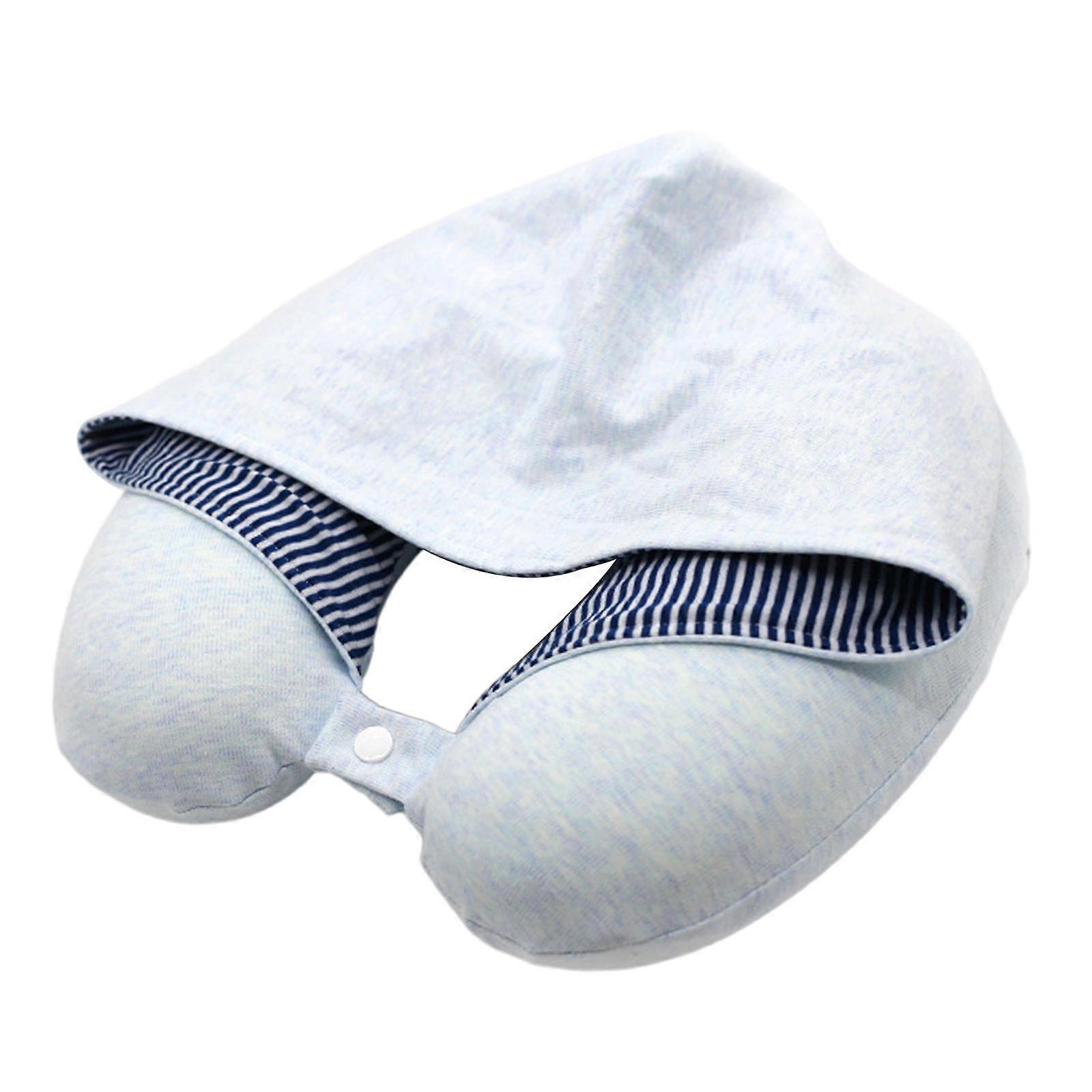 Hooded Travel Pillow Women Men U Shape Pillow for Airplane Trips Office Light Blue