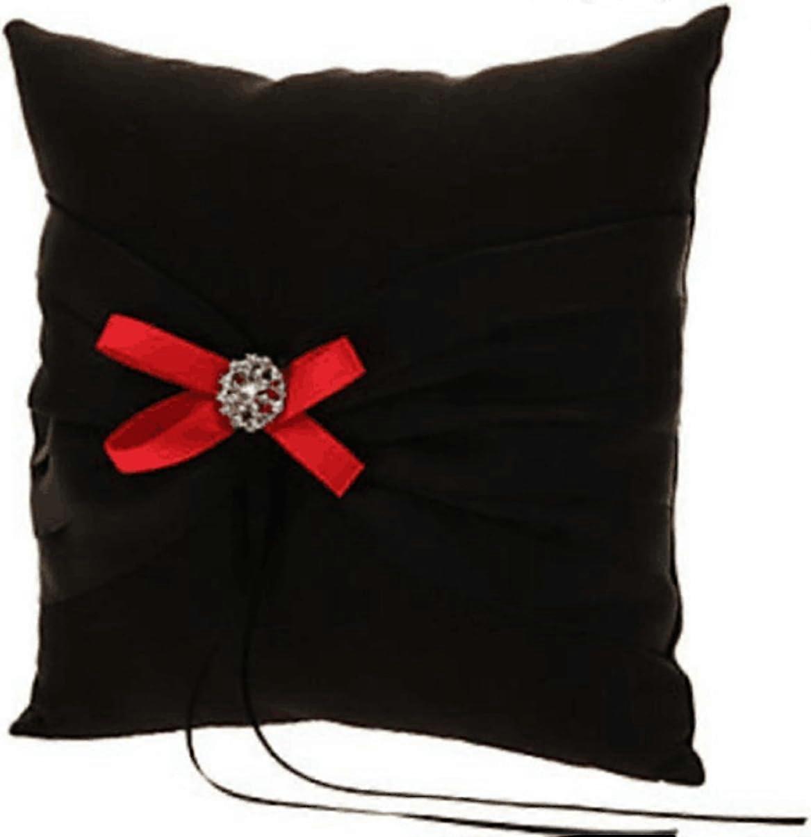 Wedding Ring Pillow Wedding Ring Cushion Ring Bearer Pillow,Black & Red,7.8 7.8 inch Black 1 Count (Pack of 1)