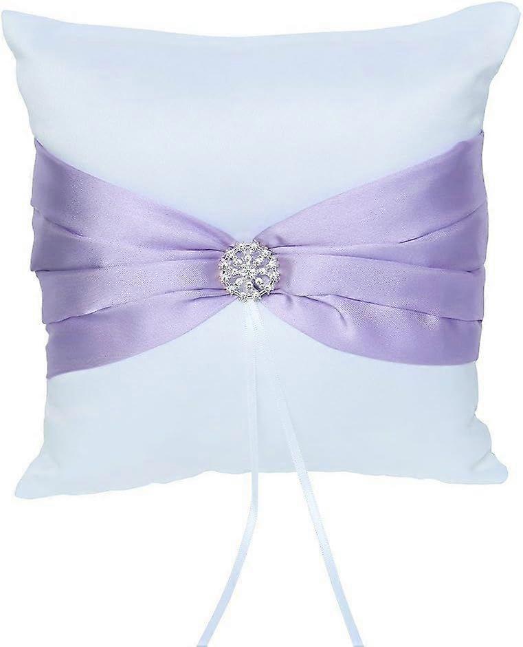 Ring Bearer Pillow Cushion 7.8 x7.8 inch with Satin Ribbon and Rhinestones for