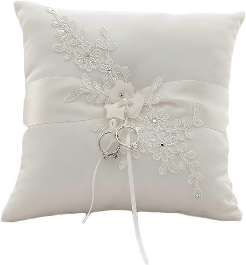 Lace Pearl Embroided Satin Flower Wedding Ring Bearer Pillow 7.8 Inch x 7.8 Inch