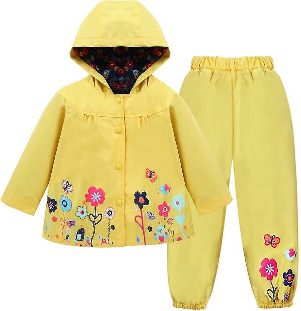 Yellow Toddler Girls Raincoat Waterproof Rain Jacket Pants Suit with Hooded