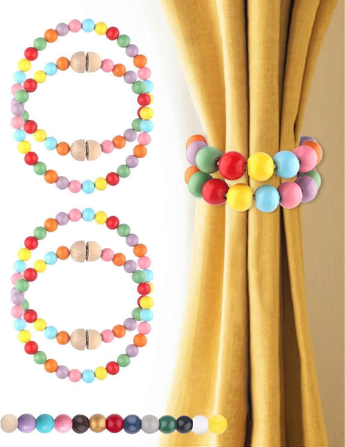 Colorful Magnetic Curtain Tiebacks 4 Packs: Strong Magnet Wood Bead Holder, Compatible with Boho Farmhouse Home Office Decor
