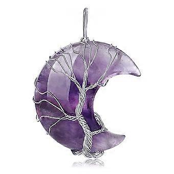 Amethyst Healing Crystal Necklace Pendant Tree of Life Wire Wrapped Crescent Moon Natural Quartz Crystal Stone