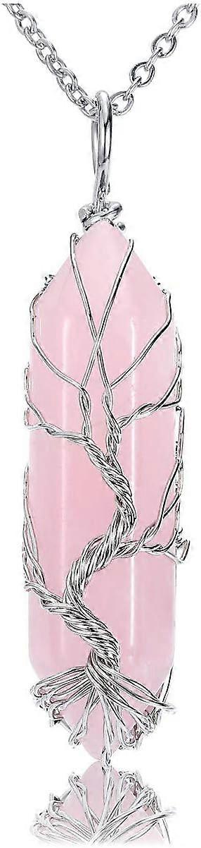 Healing Crystal Necklace: handmade tree of life necklace wire wrapped with hexagonal rose quartz crystal point pendant necklace, the semi precious stone necklace is made of natural quartz crystal stone, wearing natural healing crystal necklace can brings happiness,love and good luck . Perfect gift for lover,friend,family,mother,father,wife,husband,girlfriend or boyfriend.Tree Of Life Necklace: the tree of life symbolizes positive energy, growth, wisdom,knowledge and strength, rebirth, a bright future, longevity, and a fresh start on life. It also symbolizes family through its intricate network of branches, showing us the continuity through all generations.Rose Quartz Crystal Necklace: this rose quartz pendant necklace is made of natural quartz crystal stone, quartz crystal point will helps focus energy,activates,clear,transmits balancing,happiness,love,luck and energy.Very casual, simple, chic and elegant, easy to match your daily dress and ideal for reiki healing, Yoga chakra balancing.Size: tree of life pendant: 1.97-2.05 inches/50-52mm in length; 0.43-0.47 inches/11-12mm in width. Chain Length: 24 inches. Material: natural healing crystal stone, copper. Weight: 10gThe tree of life crystal necklace comes with a gift box, ready for gift. A perfect gift for birthday,anniversary, mother's day, Christmas Day, Valentines Day and more!