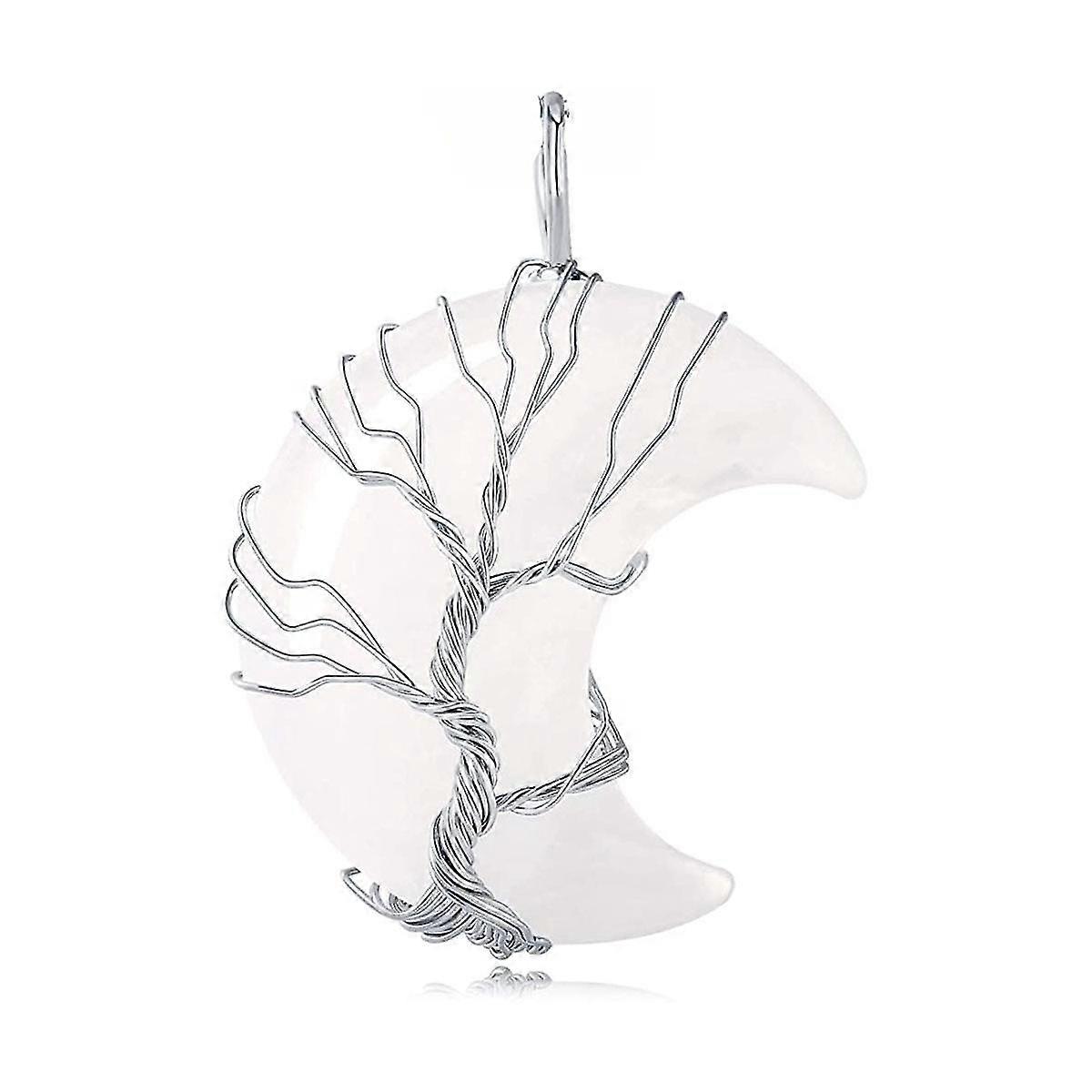Amethyst Healing Crystal Necklace Pendant Tree Of Life Wire Wrapped Crescent Moon Natural Quartz Crystal Stone