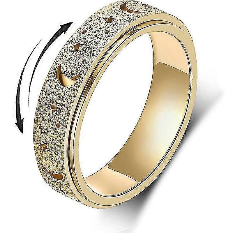 Rotating Decompression RingThis ring is designed with a rotating ring, which can effectively alleviate anxiety. When you feel stressed and agitated, the rotating ring can immediately restore calmness and face problems calmly. A rotating ring is also a ring that brings good luck. Your good luck quietly comes to you as the ring rotates. Starry Moon DesignEvery star is a unique soul, dancing at the fingertips of the ring like poetry and painting. The moon, on the other hand, is like a guardian, casting a soft glow that illuminates the brilliance of every star on the ring. The ring is adorned with tiny stars, spinning like a dream, outlining an endless universe. High Quality MaterialsThis ring is made of alloy, with a delicate texture and soft luster, showcasing an elegant style. This ring showcases our unwavering pursuit of quality with its exquisite craftsmanship and high-quality materials. Weight: 4.8g. Rotating RingThe rotating design seems to tell a mysterious story, a rhythm of fate. Wearing this ring feels like traveling through time and space, wandering in the vast sea of stars. Every rotation is a wonderful adventure that immerses one in the boundless beauty of the universe. Perfect GiftThis stress relief swivel ring is popular with women of all ages. This is a great gift to give to you as a Christmas gift, Valentine's Day gift, Mother's Day gift, Thanksgiving gift, Halloween gift, Graduation gift, Birthday gift, Anniversary gift, Wedding gift or other holiday gift A friend, sister, mother, wife, girlfriend, aunt, grandmother, daughter or yourself.