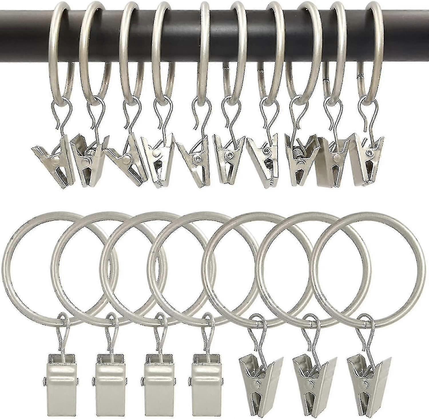 CURTAIN RINGS CLIPS PACKAGE: Set of 100 strong curtain rings with clips. eyelet rings for curtains Decorative Drapery Window. CURTAIN RINGS CLIPS DIMENSIONS: The drapes rings 1.26 inch interior diameter, Fits up to 1 inch or smaller diameter curtain rod. WIDE APPLICATION OF THE CURTAIN CLIPS: The metal curtain rings with clips, with beautiful polished finish, no snagging, glide effortlessly across the rod, good for hotels, restaurant, bar, cafe,meeting room, bedroom, etc. ADVANTAGES OF OUR CURTAIN RINGS: Decorative and made of premium metal finished with a durable plating for long lasting rustproof , Strong tension clip to support heavier application, Extra thickness and hardness, heavy duty design, stronger tension clip can hold heavier draperies without any issues. PLEASE ATTENTION: Curtains clips are some tight the first time your press on them, Easier to use after pressing on them once, Inner diameter of the curtain ring is 1.26 inches and the thickness of the suitable rod should not be more than 1 inches.