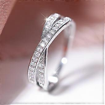 Simple Silver Color X Shape Cross Finger Rings for Women Dazzling Cubic Zirconia Simple Stylish Female Rings