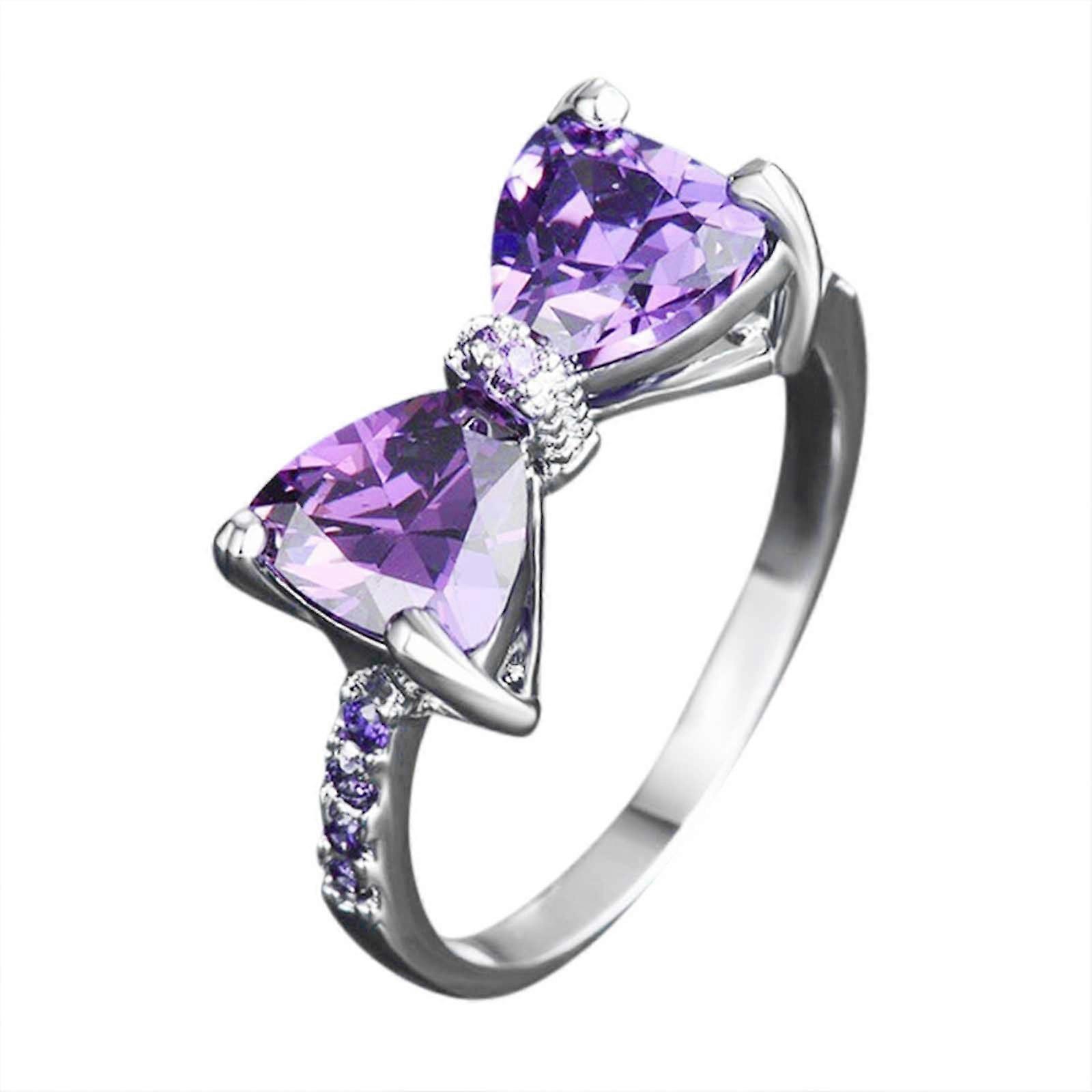 YUEHAO Rings Purple Bow Diamond Ring Elegant Rhinestone Ring For Women Fashion Full Diamond Zircon Rings For Women Size 5 10