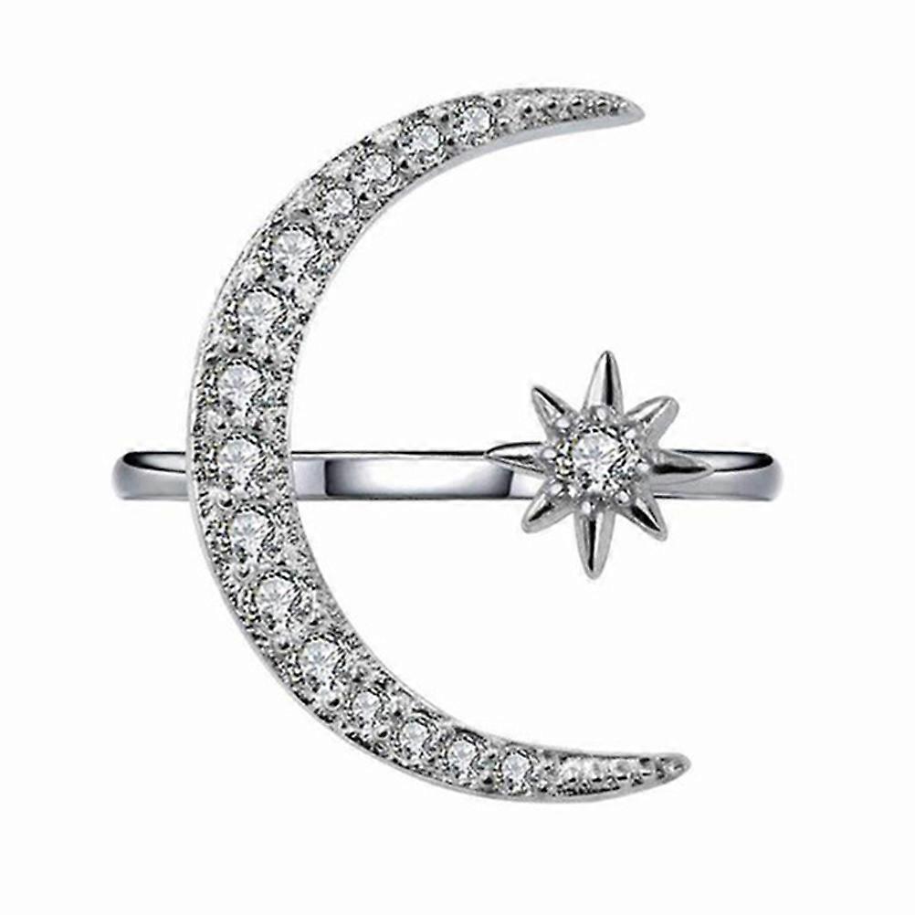 Crescent Star Shape Open Ring for Women Girls with Craftsmanship and Comfortable Fit Silver