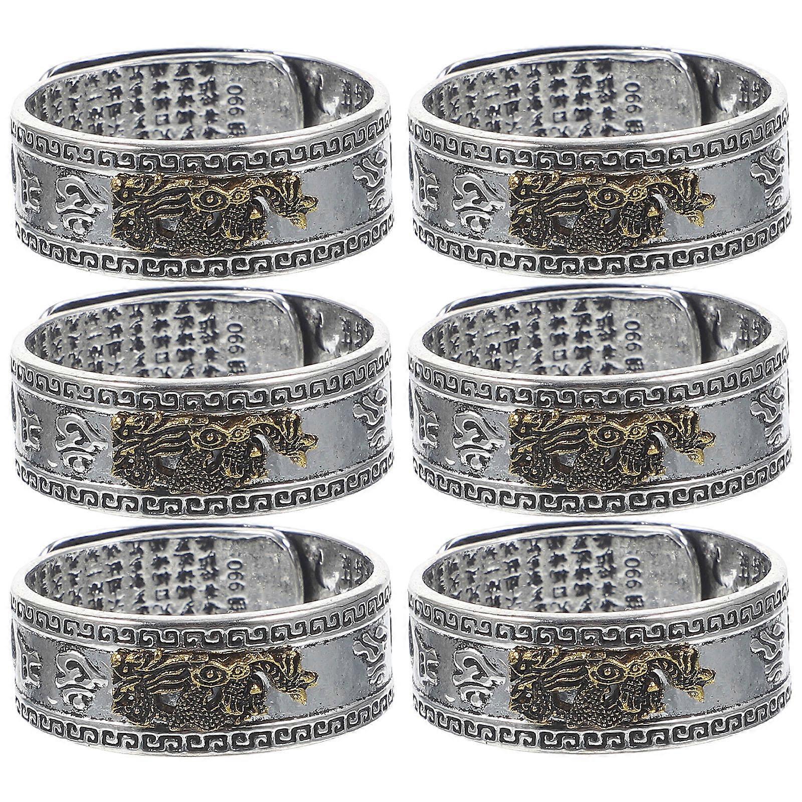 Men's Lucky Ring Metal Vintage Piyao Design Silver 2.5x2.5cm Good Fortune 6Pack
