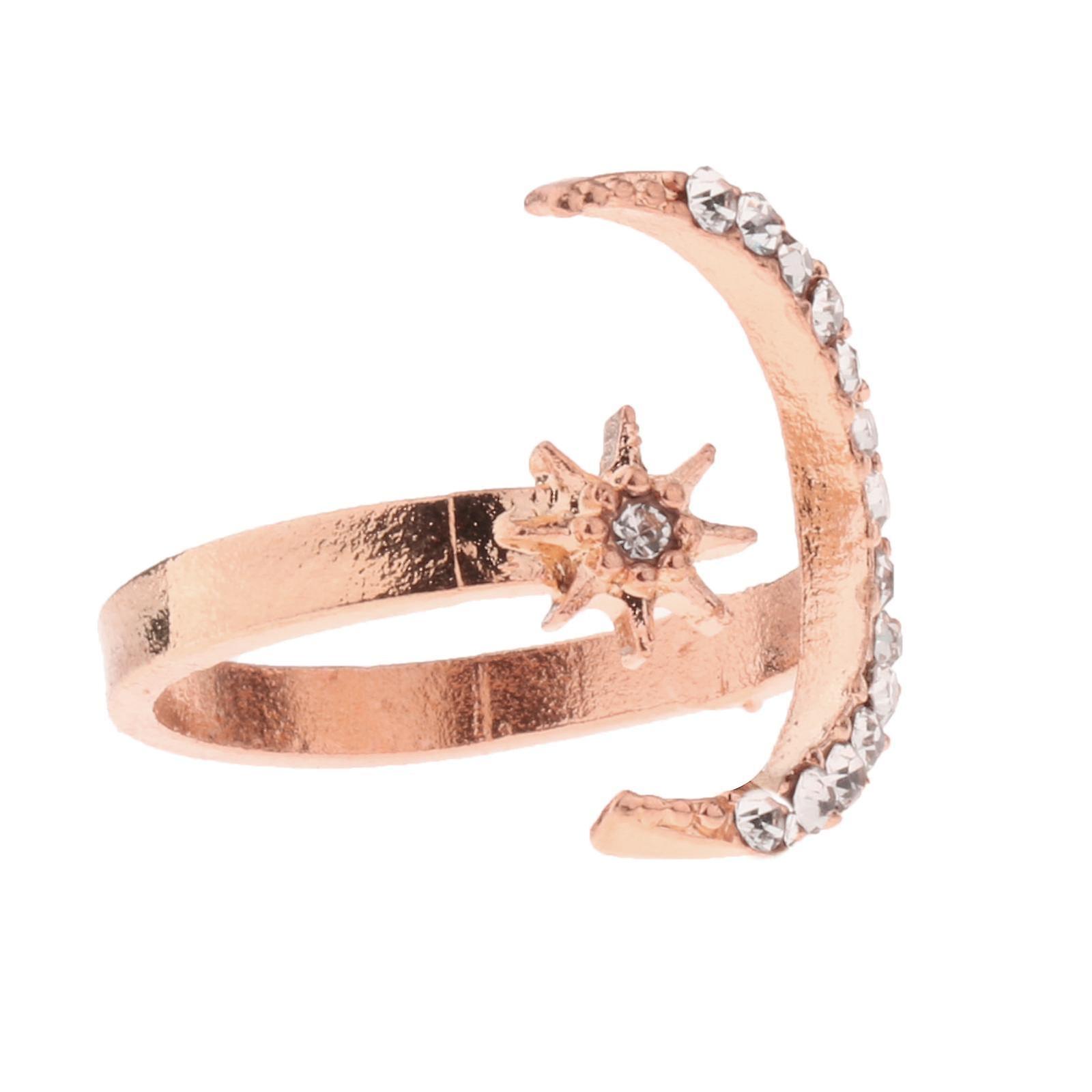 Crescent Moon Ring Elegant Open Moon Star Finger Ring for Girls Rose Gold