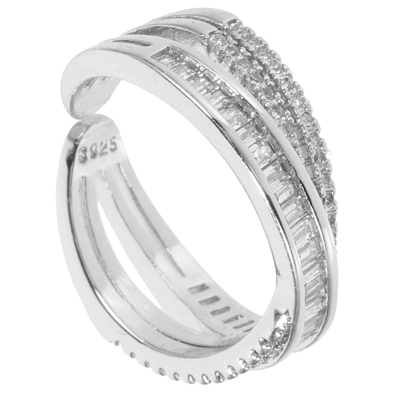 Adjustable Rhinestone Ring for Women and Teen Girls with Bright Silver Color Fits Various Occasions 0.5 Inch