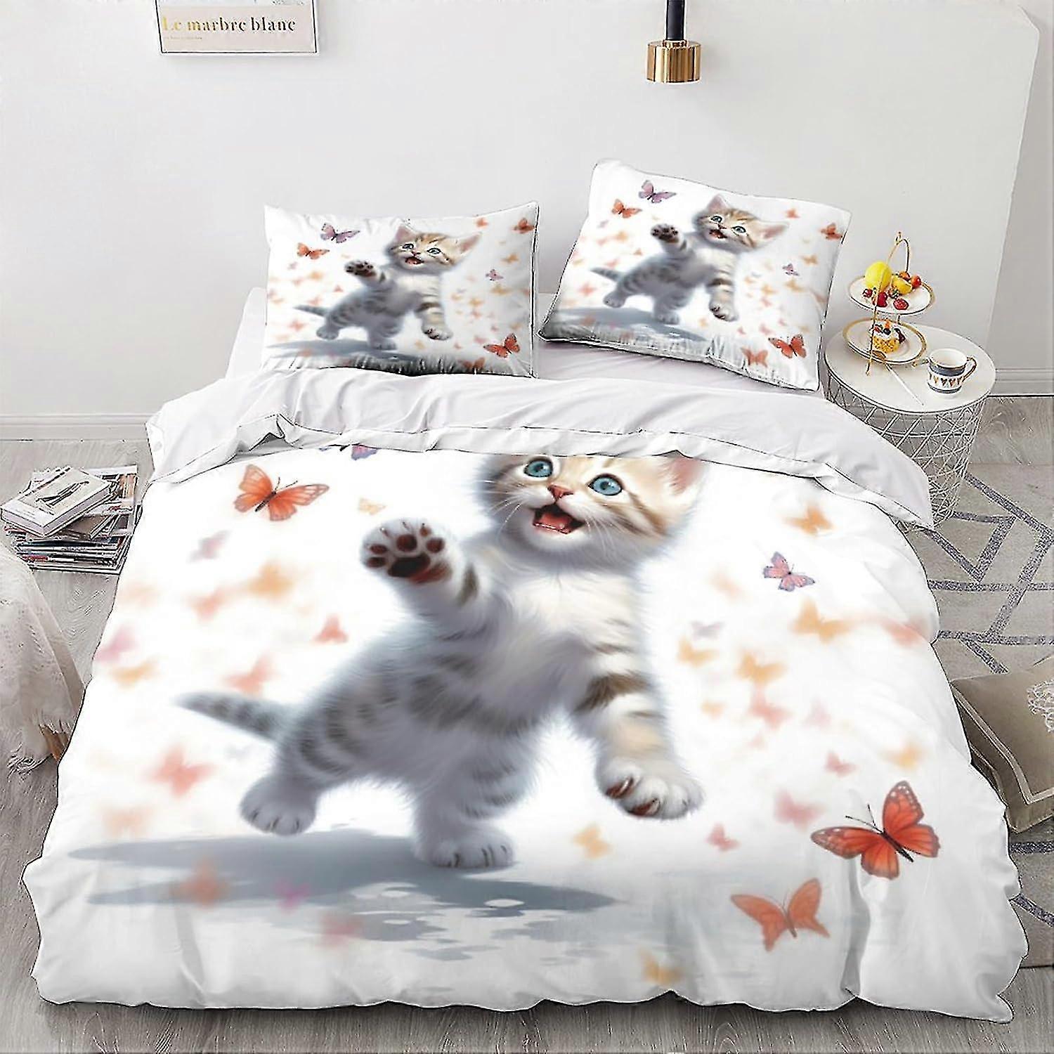 Animal Print Design Cat Duvet Cover Soft Microfiber Bedding Set with Zipper Closure Cute Kitty Quilt Cover Pillowcases Double
