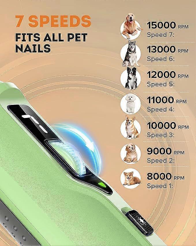 7-Speed Pet Nail Grinder with Light Heavy Duty, Whisper Quiet Nail Trimmer for Dogs, Cats, Birds & Small Animals Single-Handed Operation