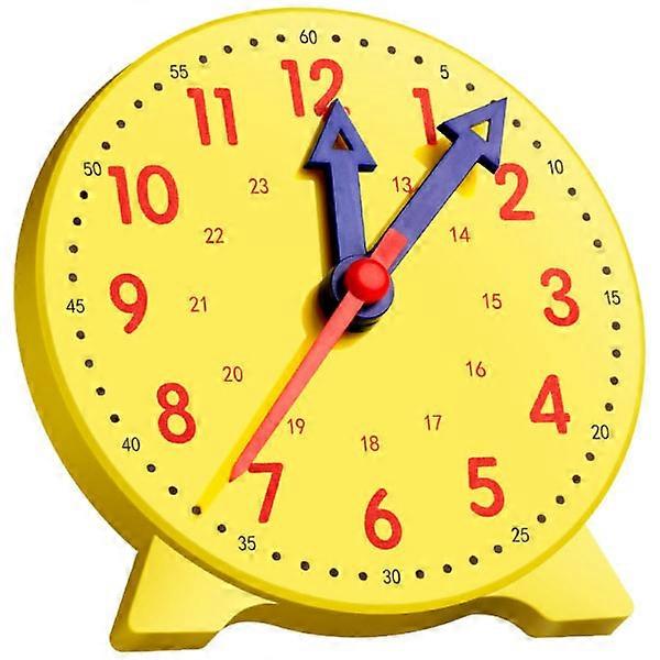 Learn to tell time with this gear clock, made of plastic. Kids' Clock - Children can learn to tell time with this easy-to-read 12-hour kids' clock for learning time. Easy-to-read analog clock - This analog clock features large numbers. Red hour markers and dots around the edge make it easy to learn to read minutes. Color-coded moving clock hands: Moving hands make it easy for children to understand the relationship between hours and minutes. Clockwork: Internal gears maintain accurate hour and minute relationships just like a real analog clock.
