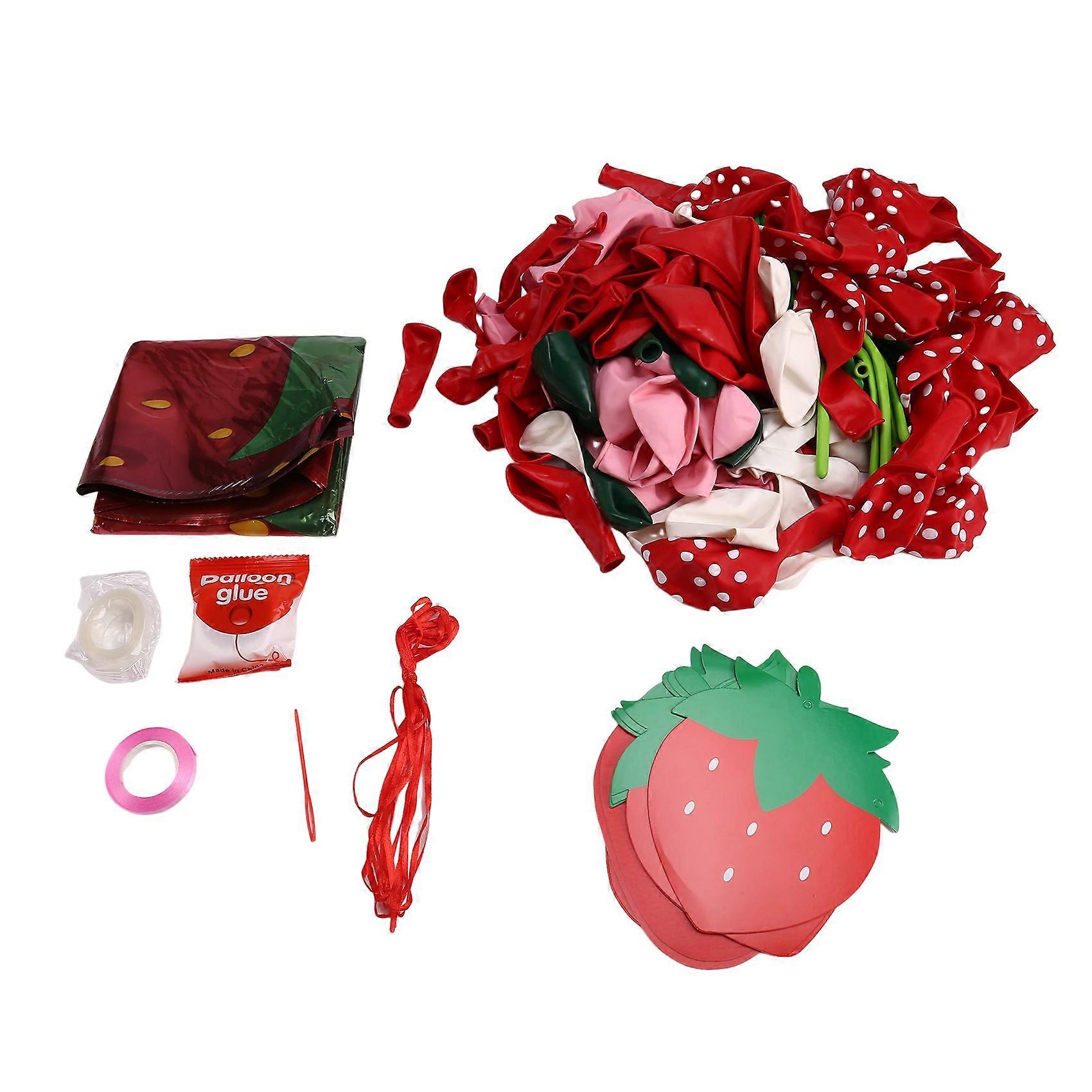 Strawberry Balloon Arch, 157 PCS Strawberry Balloon with Red Pink Green Latex Balloons and Strawber