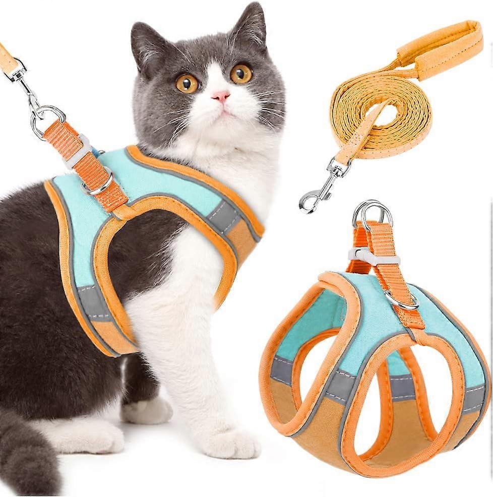 Cat Harness and Lead Set for Walking, Adjustable Soft Sturdy Faux Suede Escape Proof Kitten Vest Harness and leash with Reflective Strip for Large Med